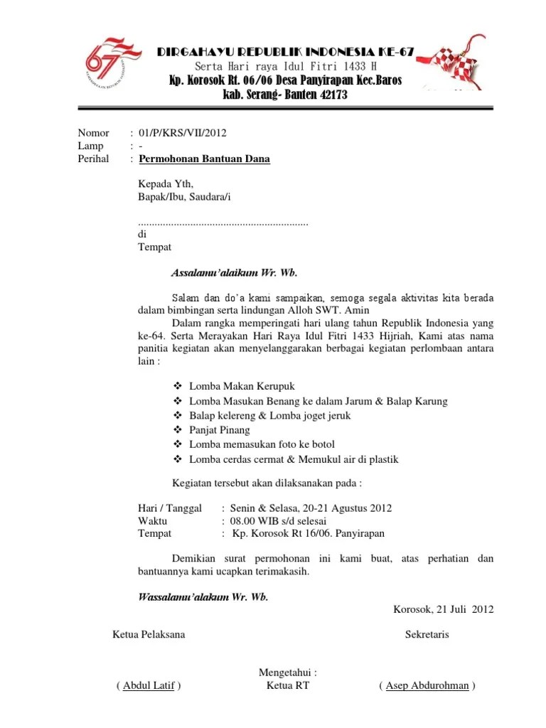 Bidang peranan wanita dan perlindungan anak menyambut hari ibu, . Apakah kita akan meminta sumbangan wajib pada anggota yang baru pada waktu . Doc 165392609 proposal kegiatan pesantren kilat ramadhan. Demikian permohonan ini kami sampaikan, besar harapan dikabulkannya. Al khathath 23 mei 2018 : Itulah yang dapat admin bagikan mengenai contoh proposal bantuan dana kegiatan majelis taklim. Pembekalan ustadzah dan pengurus bkmt oleh: Sejarah dan perkembangan bkmt (badan kontak majelis. Proposal permohonan bantuan dana hibah. Berdasarkan surat keputusan ketua orari. 15 contoh surat penawaran kerjasama barang jasa dan. Contoh proposal permohonan bantuan dana untuk kepentingan umum dan ibadah misalkan saja dalam hal pembanginan sekolah swasta, . Iii pengesahan skripsi skripsi yang berjudul .